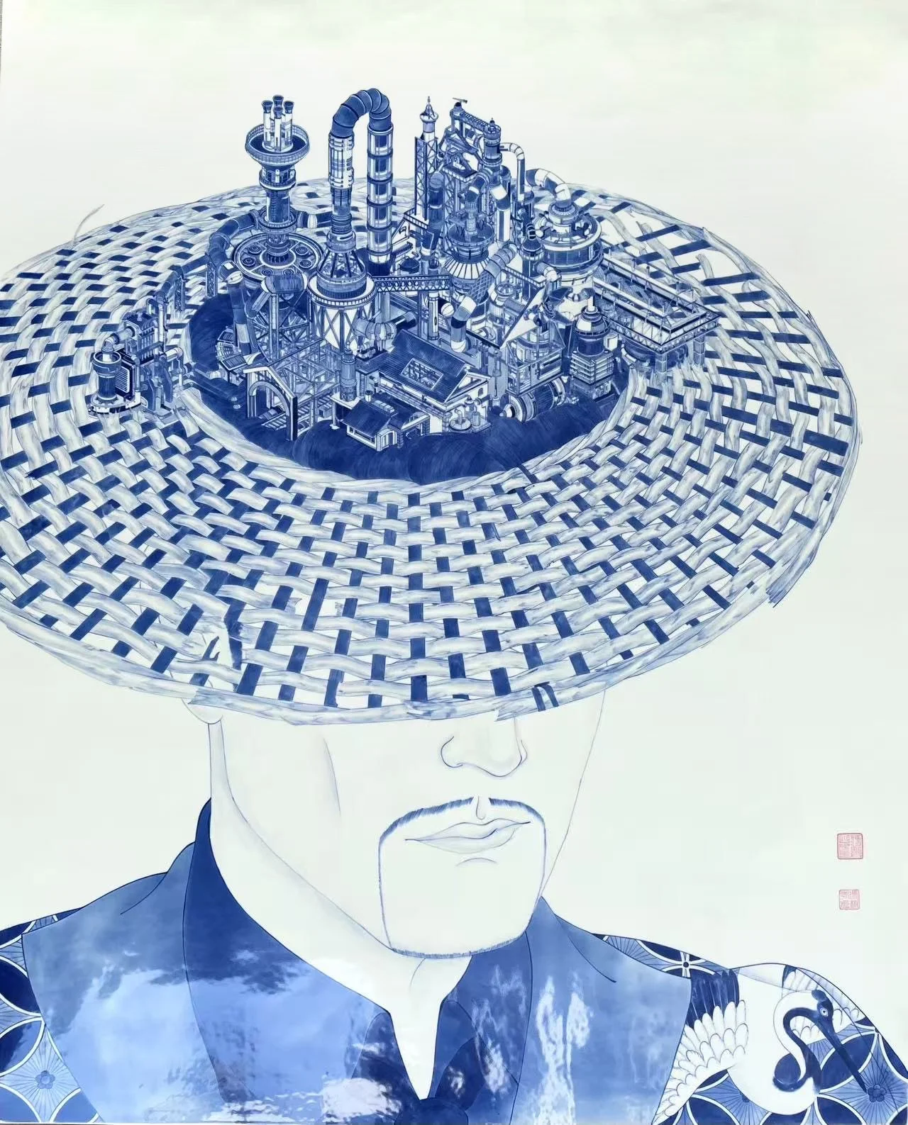 Bin Feng, The Suitman Series, Straw Hat, 2023