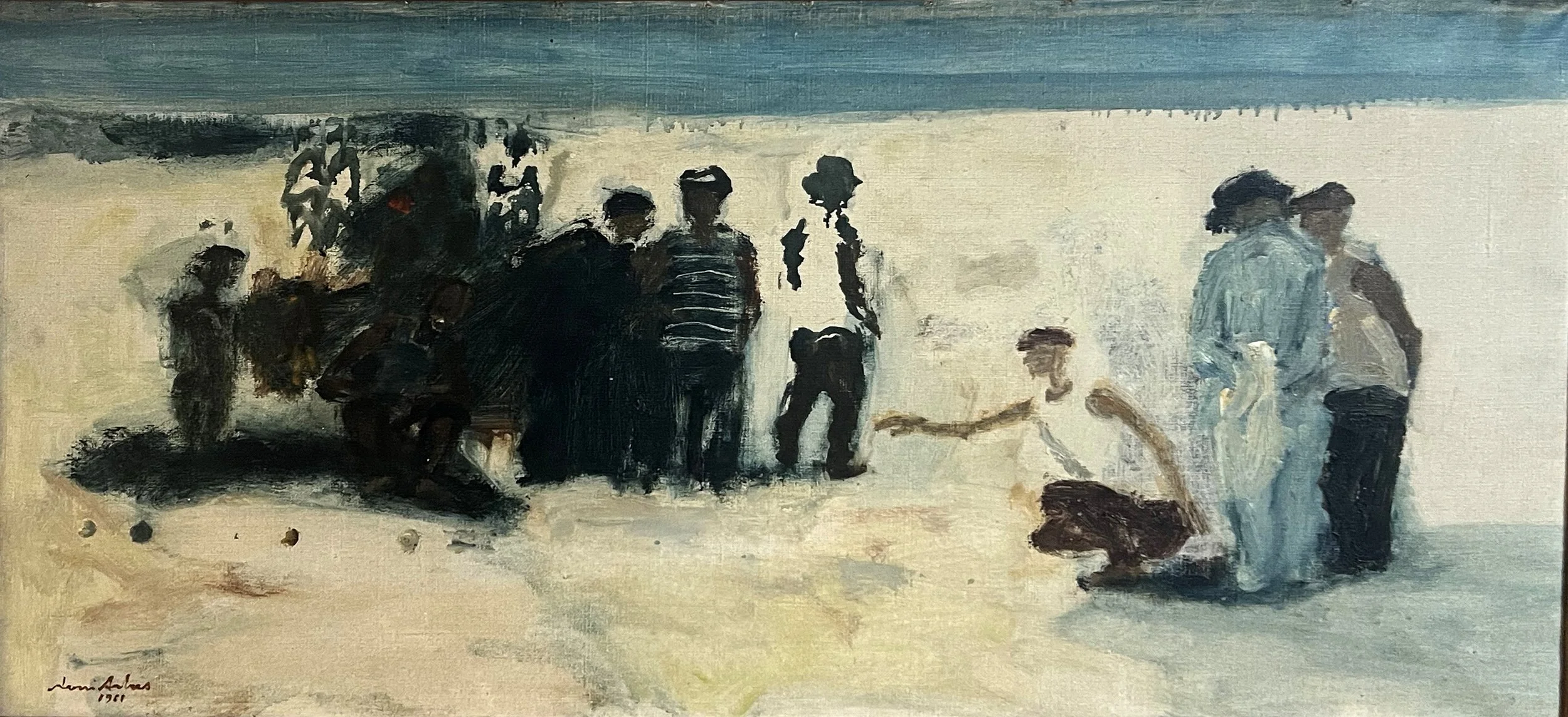 Avni Arbas, Figures on a Beach, 1961, oil on canvas, 16 x 31 in.